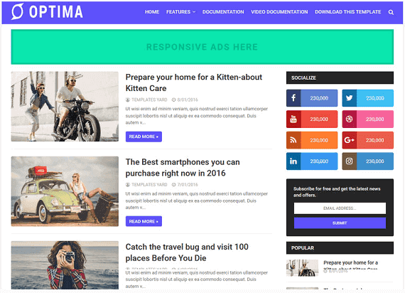 إذا كنت تبحث عن قالب تحسين محركات البحث (SEO) والجوال وتحسين السرعة وتصميمه أفضل أيضًا ، فيجب عليك استخدام نموذج Optima blogger. ما أعجبني فيه هو أنه حتى داخل المنشور ، تحصل على فتحتين لوضع الإعلانات.