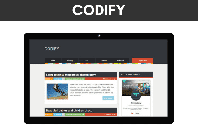 Codify هو قالب مدونة لمجلة مع تخطيط منشور بنمط القائمة ، وتصميم سريع الاستجابة و Adsense.